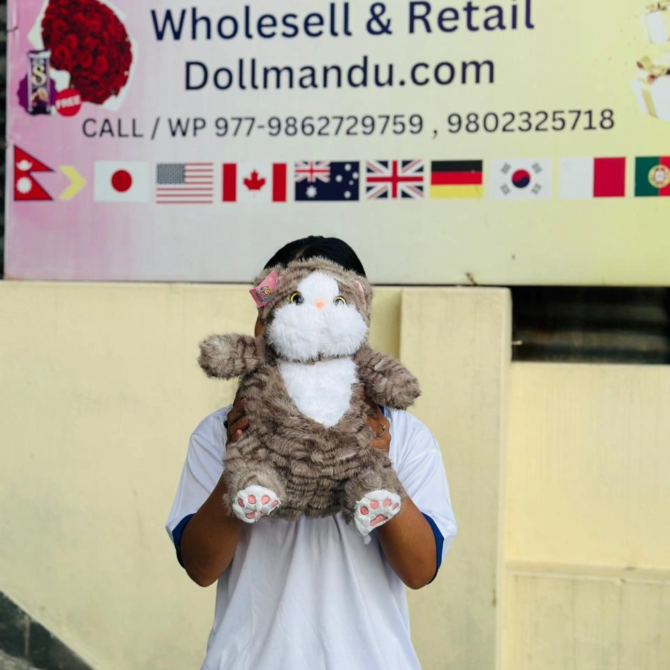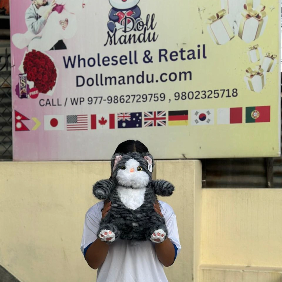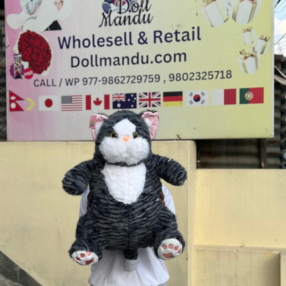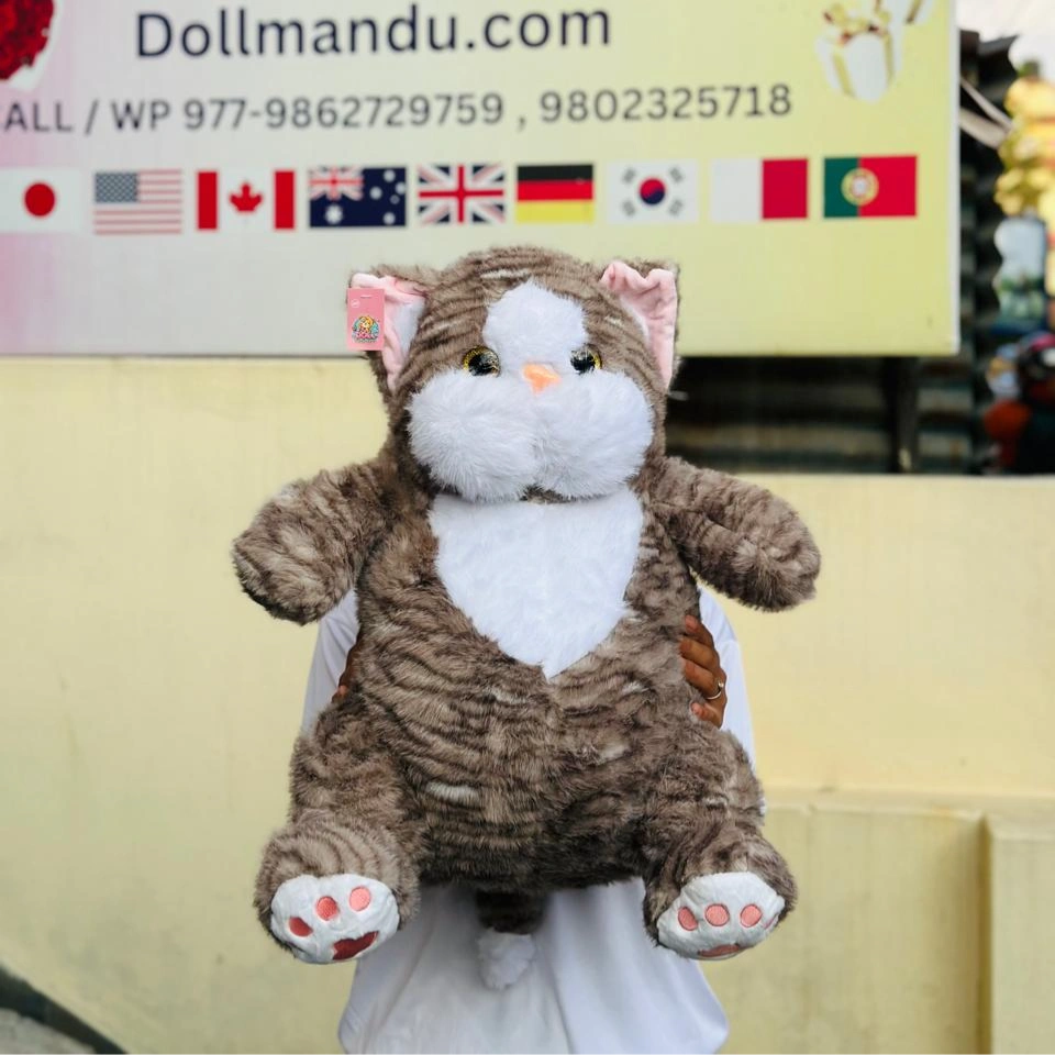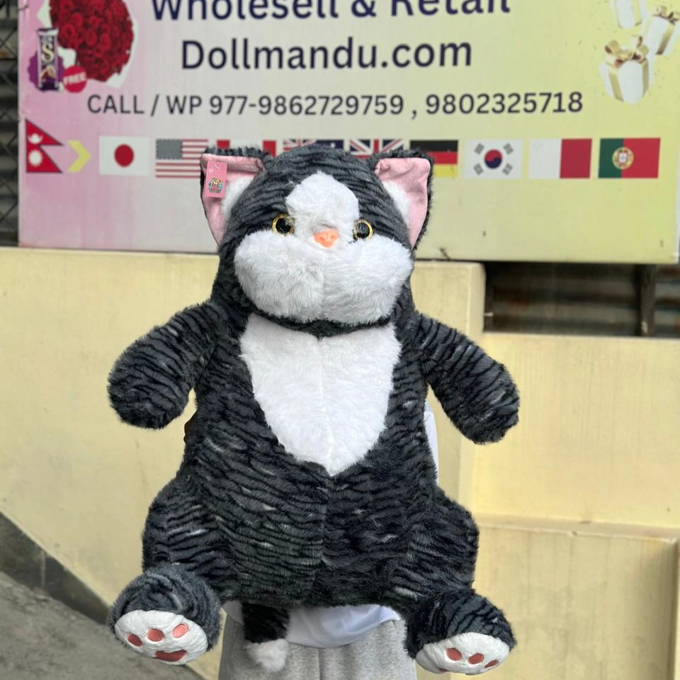 This adorable grey-and-white kitty comes with big round eyes, a squishy belly, and soft paw pads that make it impossible not to hug. Perfect for gifting, decorating your room, or simply cuddling while you sleep.